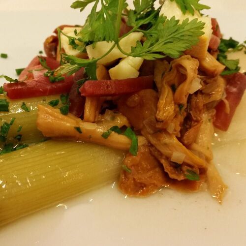 This cosy chalet is set in a landscape of forests and mountains. Christelle proposes her own personal brand of cuisine (savoury éclair filled with porcini mousse, chanterelles in vinegar and cured ham, duck pot au feu with autumn vegetables cooked in broth), while Frédéric carefully selects the wines.