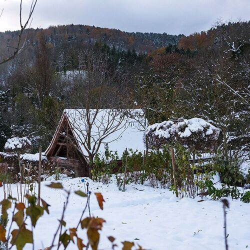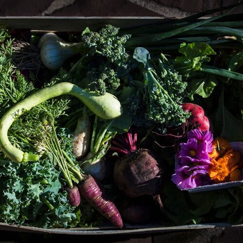 "Just 500m from the restaurant, we have set up a permaculture garden with over 350 varieties of herbs, plants, vegetables and fruit, including some that are really rare. The greenhouse means production is guaranteed from mid-February to late December. Composting and recycling are part of our daily routine, our hens provide some of our eggs, and our honey comes from our own beehives."