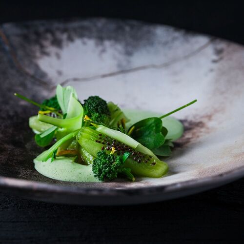 In Riquewihr, Jean-Luc Brendel has built up an entire ecosystem: in addition to his fine dining restaurant, he has a modern winstub and also offers luxurious guestrooms for overnight stays. At La Table du Gourmet, in the heart of the medieval city, the chef cooks beautiful seasonal ingredients with great care and a dash of creativity, making each dish his own. His different menus showcase produce from Alsace and from his garden (tended according to the principles of permaculture) such as the delicious Petrowski turnip, served with humanely-reared veal, cooked over the embers. Two wine lists, the first dedicated to the fines wines of Alsace, and all this to be enjoyed in surroundings that combine olde worlde charm (the building dates back to the 16C) with contemporary decorative touches.