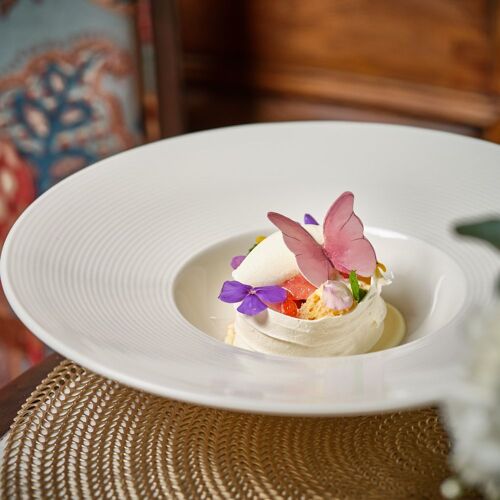 Perched on the top floor of Hotel des Arts Saigon, The Albion blends historical charm with modern elegance to pay homage to British heritage. Chef Kirk Westaway's menu reimagines and elevates British classics, such as fish and chips, roast chicken with thyme and Eton mess. The Albion Tomato, with burrata, Dalat heirloom tomatoes and basil-orange sorbet, is a standout. With stunning city views and expert wine pairings, this place showcases contemporary British dining at its finest.