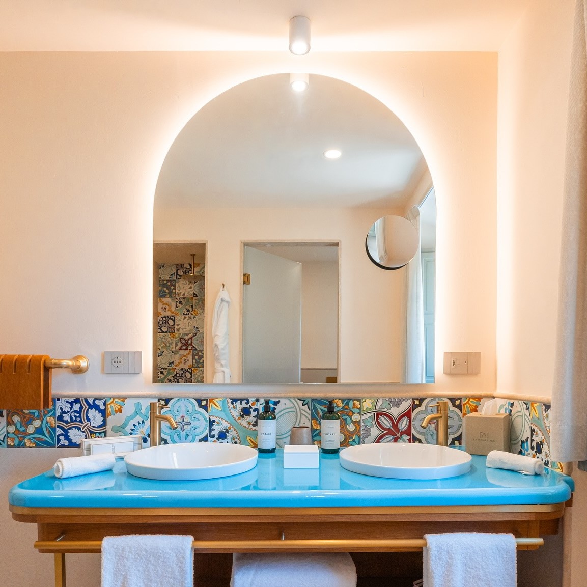 Rooms highlight the monastery’s finest assets, including high wood-beamed ceilings, exposed stone walls, and an abundance of natural light, thanks to the elevated position. Simpler rooms are charming and cloister-like, with wooden writing desks and shuttered windows opening to the gardens, while suites are more opulent, with extras like seating areas, kitchenettes, and spacious bathrooms with freestanding tubs. Elsewhere on the property, the one-of-a-kind spa has an ethereal indoor-outdoor pool built into natural rock walls, the old cellar hosts wine tastings, and the peaceful citrus grove is the perfect place to relax with a cappuccino or a spritz.
