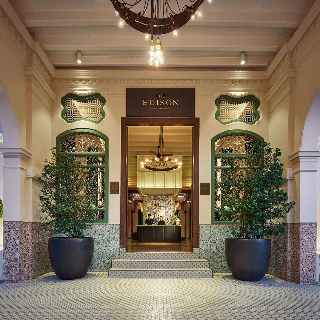 The Edison George Town brings fresh energy to a 1906 mansion just outside Penang’s UNESCO-listed core. Once a Hakka tycoon’s home, and later, a less elegant guesthouse, the building was fully restored in 2016, preserving its marble floors and cast-iron columns while adding Art Deco flair and a bold palette. The pool sits in a leafy courtyard, with shaded cabanas for mid-afternoon escapes. But the real action is outside, where George Town’s temples, shophouses, and street food stalls wait in every direction. It is heritage with bite, right in the middle of Malaysia’s most flavor-packed city.