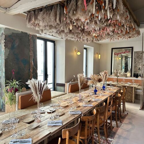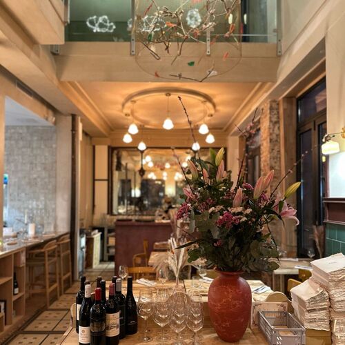 Once a traditional café in the 11th arrondissement, this place now aspires to the status of a huge country cottage (the meaning of "dacha"). Many original features – mouldings, chandeliers and smoked mirrors – have been preserved and are now joined by bunches of dried grasses and ears of wheat on tables made from wooden pallets. The dishes are concocted by chef Maksym Zorin (a graduate of the Ducasse stable, most notably), who taps into French culinary heritage with tweaks for optimal elegance and flavour: delicious and delicate pâté en croûte; slightly smoked pink veal with an airy parsnip purée; Tonka bean chocolate and hazelnuts for dessert – on point and unpretentious. Table d'hôte upstairs.