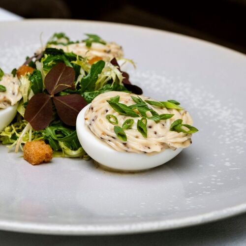 Located next to Place du Maréchal-Juin, this charming little 1900s restaurant has a glass front, green wood panelling and listed ceramic tiles. Chef Pauline Nicolas, who trained at Maison Rostang, conjures up enticingly named dishes that live up to their promise once served. For lunch, a delicious starter of Morteau sausage, mushrooms and a vin jaune sauce, followed by trout with braised baby gem lettuce, and for dessert, it doesn't get more indulgent than the poached pear tartlet. Here, the high-quality ingredients are treated with the respect they deserve.