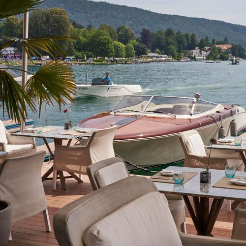 An absolute highlight here is the location right by the lake! The trendy, elegantly designed restaurant flows seamlessly into the terrace – you can take in the lake view from every table. Two creatively inspired slow food set menus are on offer, one of which is vegan. In addition, the menu features classics, including familiar favourites such as Wiener schnitzel. Regional ingredients underpin it all. The wine list is predominantly Austrian, supplemented by Old World and a few New World wines, as well as a selection of sparkling wines. Stylish guestrooms at the Falkensteiner Schlosshotel Velden, to which the restaurant is connected via an underground passageway.