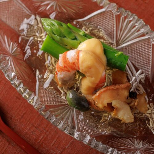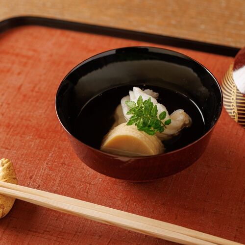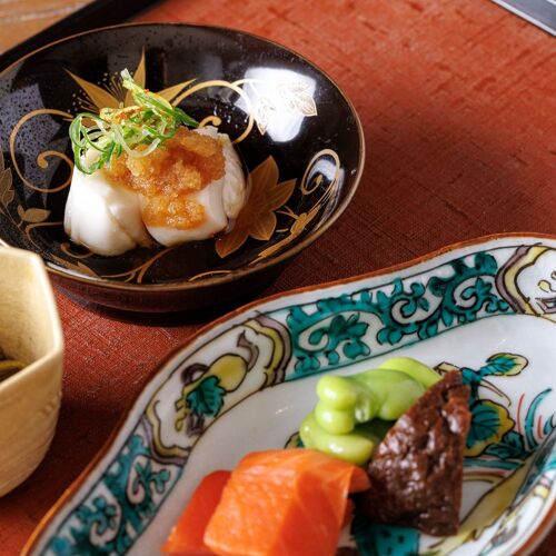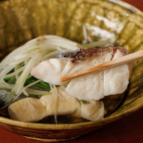 As a ryotei cook, the chef learned never to forget the basics of Kyoto cuisine. In a mark of respect, the meal begins with a cup of sake. The chef expresses his commitment to gracious service through the passion he devotes to his cooking. Tilefish sashimi is lightly salted, enhancing flavour. Instead of simmered vegetables, hot-pot cooking is offered. Prizing engagement with his guests, the chef works his magic right before their eyes. The surest sign of a sincere craftsman is earnest devotion to his craft.
