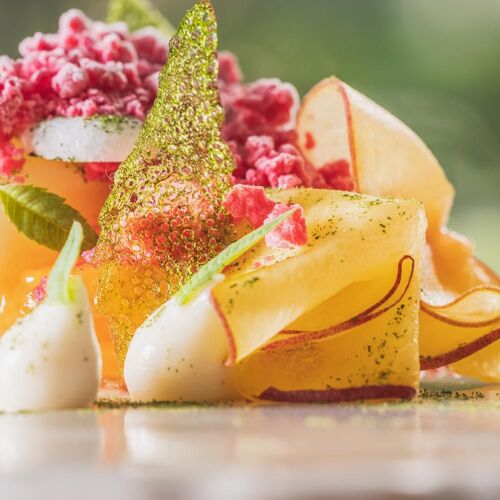 Charming grounds lead up to this beautifully restored 16th-century country house, where your meal commences with an array of snacks – the last served in the kitchen by Head Chef Mark Birchall, who introduces some of the outstanding produce to come. Once you’re settled in the striking Scandic-style dining room, the main event begins: a procession of refined, stunningly detailed dishes. Mark’s understanding of flavour is impeccable, showcased in brilliant combinations like warm ripe tomatoes with tiny cubes of bone marrow. Among the accommodation options are garden rooms that reflect the natural surroundings.