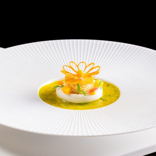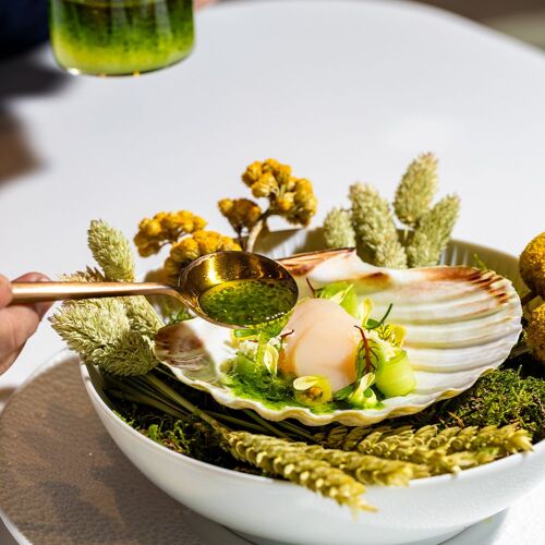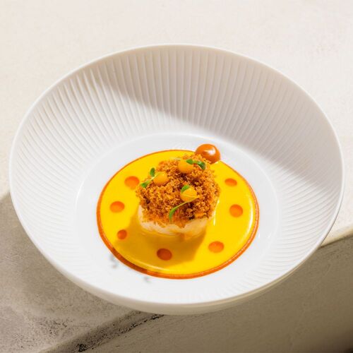 Start by soaking up Beluga's atmosphere over an aperitif in the trendy lounge. The real adventure begins in the adjacent dining space, which boasts high ceilings, stylish design and views of the Maas River. Servais Tielman proves himself to be a connoisseur when it comes to ingredients, from luxury items such as caviar and truffle to vegetables grown in Limburg. He and his team have mastered the art of turning bright ideas into bold flavours. The creative chef enjoys experimenting with textures and culinary techniques from far-flung places. He understands perfectly how crisp acidity and sweet nuances can enhance each other. Langoustine is a case in point: seared briefly, coated in an apricot glaze, paired with an apricot purée, topped with a slice of Suprema de Cecina ham and served alongside a heavenly langoustine bisque seasoned with star anise and lemongrass. Chef Tielman's dishes come to life courtesy of beautiful presentations and masterful technique. A culinary declaration of love you won't quickly forget.