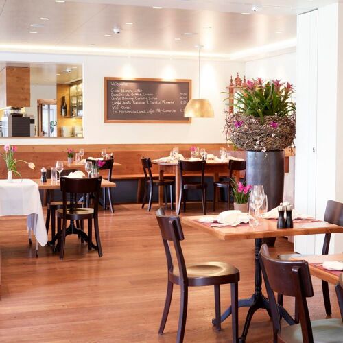 The elegant restaurant of Hotel Balm has a classical feel when it comes to both the service and Beat Stofer's cuisine – this is unpretentious fare made with excellent ingredients. Diners can opt for a tasting menu with four to five courses or order à la carte. There is also a well-curated wine list. In good weather, the terrace is a fabulous spot from which to enjoy the mountain views. This place is always busy, so be sure to book well in advance! Cheerful guestrooms are available for overnight stays.