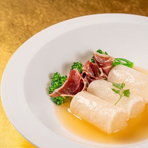Equally suited to power lunches and friendly get-togethers, this strikingly lavish restaurant dominated by a frosted crystal flying dragon offers far more than just a treat for the eye. Cantonese classics and dim sum crafted with top-notch ingredients are what keep diners coming back. Besides the main menu, ask about their seasonal dishes such as clay pot rice and Dongshan goat in winter. Thoughtful service adds to the experience.