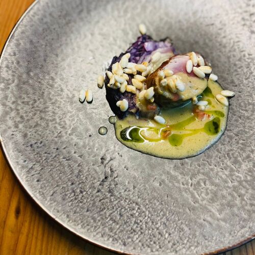 ‘Komforta’ is Esperanto for ‘comfortable’ or ‘cosy’. It is an apt description for this restaurant in the style of a mountain hut, located in a slightly elevated part of town, as the wood accents feel warm and inviting. The cuisine bursts with creativity, crafted by a chef who gives his imagination free rein. Nara ingredients reflect the tempo of the seasons. The appetiser platter, piled with the flavours of a rich variety of ingredients, is served only at lunch. In the evenings KOMFORTA offers prix fixe menus with several courses.