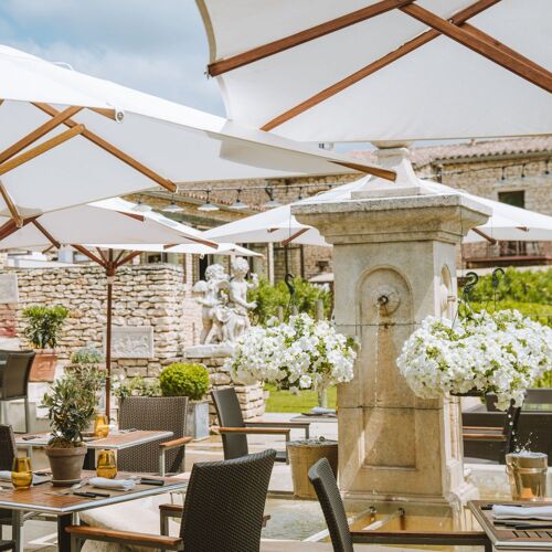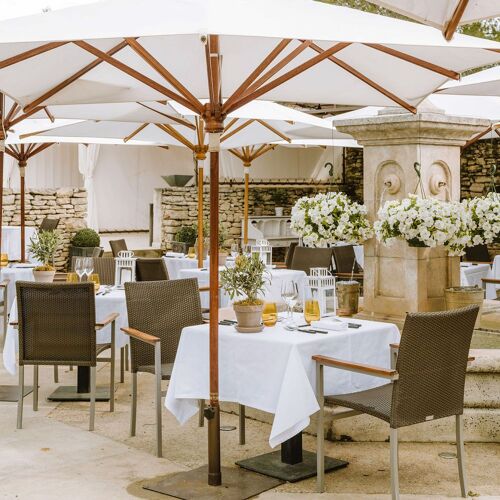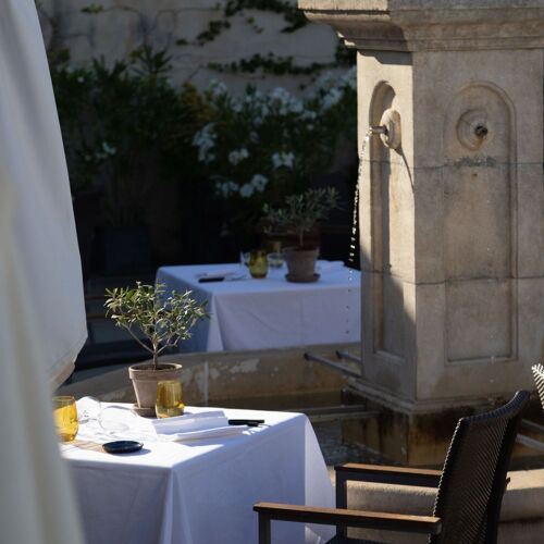 The menu of this Café features a seasonal repertory with Mediterranean influences (Roussillon asparagus, Ventoux pork chop, aïoli of salted whiting) and recipes that are reminiscent of the summer holidays (salade niçoise, club sandwich). Simple, no-nonsense nosh served by a fountain overlooking the swimming pool.
