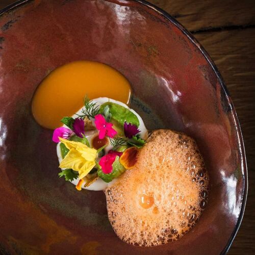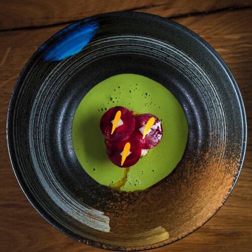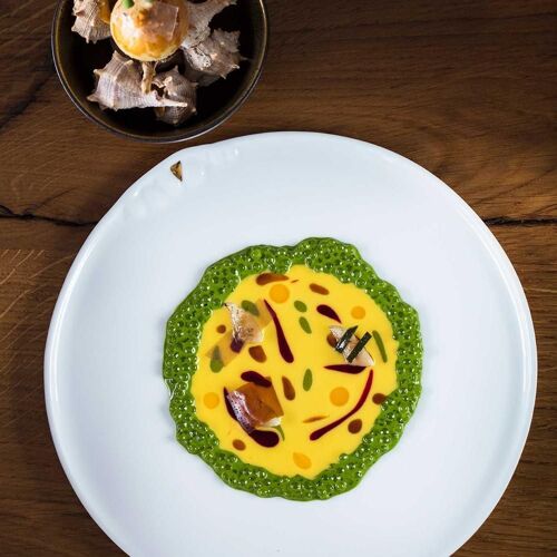 In his eatery near the Stade Vélodrome, this artist-cum-chef on a perpetual creative quest has elevated the small portion to the realm of art. He is a virtuoso when it comes to spices, roasting and smoking and his childhood in Congo flows freely through his cuisine. This distinctive hallmark is further enriched by a unique use of vinegars (over 400 house creations) that add depth and complexity to his jus. The resulting lineup of some forty small dishes, a truly herculean task, is surgically crafted and often visually striking: cuttlefish steamed in sake, puffed barley, briny seasoning and seaweed; watercress, smoked beetroot, langoustine milk, iced burnt langoustine heads. Each meal is a feat of culinary excellence, supervised by a diffident, yet single-minded chef, whose watchful eye never leaves the serving hatch.