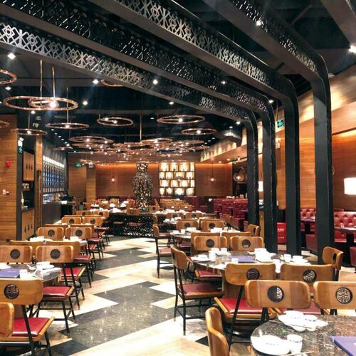 For a noodle shop, the Chinese-inspired faux-industrial decor is lavish – brushed brass ring pendant lamps and black wrought-iron arches perforated with floral motifs. The menu is almost the same as at its Hong Kong counterparts. The must-order shrimp wonton noodle soup comes with springy noodles and crisp sweet shrimps enrobed in a translucent skin. Or try the char siu pork puff pastry with spot-on seasoning and fine noodles with a generous covering of shrimp roe.