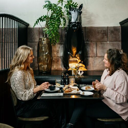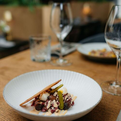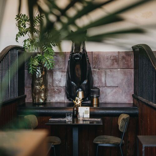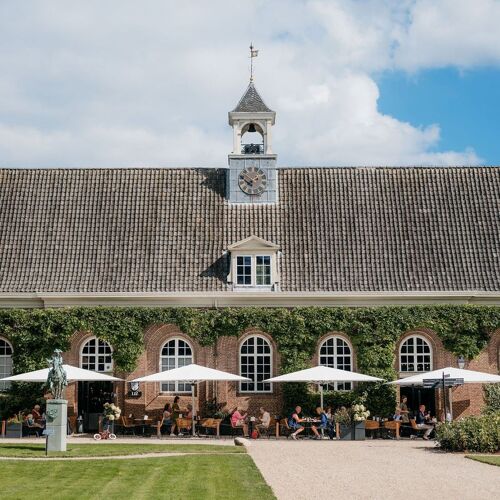 The wooden horse heads on the walls, the impressive chandeliers that call to mind the wheels of a horse-drawn carriage, the partitions between the tables: you can't help but notice that you're dining in the former stables of Amerongen Castle. The terrace overlooking the castle and gardens is breathtaking! The cuisine is characterised by its use of locally sourced ingredients, French cooking techniques and a global outlook. The duck gyoza in a rich game broth with marinated mushrooms and crispy scallions says it all!