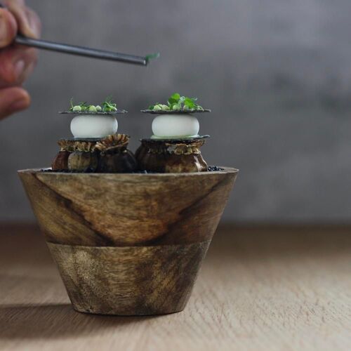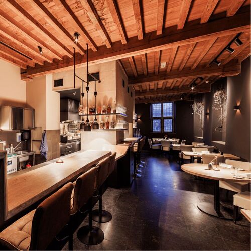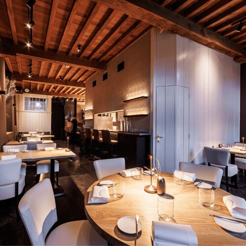 With a slogan like Volg de natuur ("Follow nature") and a name that refers to the fertile, clay-rich soil of the area, it is immediately clear that terroir is a key focus at Lutum. This vision is carried through into every aspect of the restaurant. The decor has a natural Zen feel, with an abundance of decorative features reminiscent of trees. The menu showcases the freshest ingredients sourced directly from local gardens and food forests.