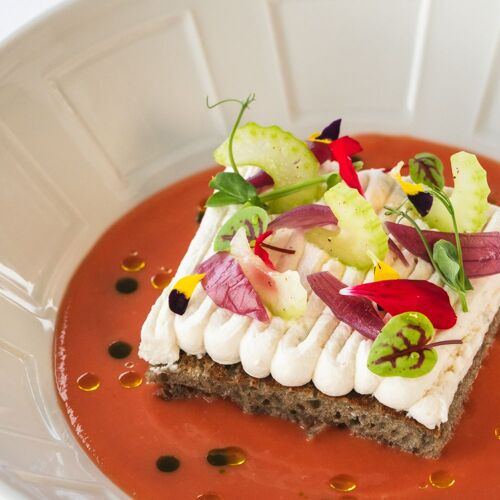 On the first hills behind Garda, the view from the terrace surrounded by greenery is an enchantment, embracing the southern part of the lake, while the interior rooms have been carved out of an old mill with stone walls, now comfortable, "light" and cosy spaces. Here chef Perbellini has set up a cuisine that starting from the territory, from freshwater fish in particular, opens up to proposals of sea and land with Mediterranean and contemporary taste, the steamed seafood salad topped with a wasabi mayonnaise is really delicate and fragrant. Do not miss one of the signature dishes of the famous chef, his legendary mille-feuille.