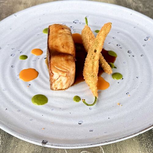 La costa campana, in particolare il Golfo di Napoli, è ricca di panorami mozzafiato, ma qui siamo siamo tra i più incantevoli. Direzione albergo Cala Moresca, lasciate l'auto nel parcheggio, da qui il personale vi accompagnerà al ristorante. Nel silenzio di un promontorio immerso nel verde, vi accoglierà una terrazza affacciata sul mare, davanti a voi Procida che si sovrappone ad Ischia, sulla sinistra il profilo inconfondibile di Capri, sulla destra la terraferma con il monte di Procida. Meraviglioso. Ai fornelli Angelo Carannante, con l'arduo compito di confrontarsi con tanto spettacolo. Lo fa in grande stile, con un lungo menù degustazione, tante portate che arrivano a sorpresa, e riprendono le tradizioni regionali, riviste tuttavia con libertà, creatività, tocchi esotici... risultati eclatanti! L'ispettore ha gradito: ventresca di tonno con crema di fagioli bianchi e cipolla caramellata.