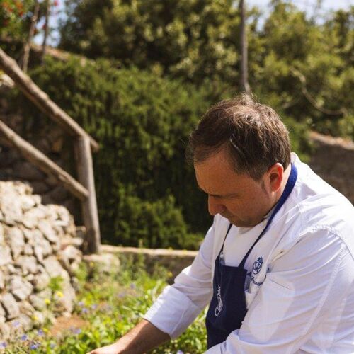 All'interno del Monastero Santa Rosa, uno degli alberghi più originali ed iconici della Costiera (la sua storia religiosa inizia nel 1600 e ancora oggi ne rimangono diverse tracce), i tavoli del ristorante occupano una terrazza mozzafiato, con la vista che spazia dal giardino alla piscina fino al mare, nel silenzio di un luogo incantato. A magnificare la cucina ci pensa Alfonso Crescenzo, la cui mano si attiene allo slogan che campeggia in carta: "Niente è più complesso di una cucina semplice" reinterpretando a modo suo, con gusto e naturalezza, le tradizioni campane e presentando piatti generosi e di grande impatto. Il consiglio dell’ispettore: rombo chiodato con cicoria amara, zuppetta di cernia, spugnole e aria di provola affumicata. La proposta è – comunque - equamente suddivisa tra terra e mare, non dimenticando ciò che può offrire l'orto di casa.