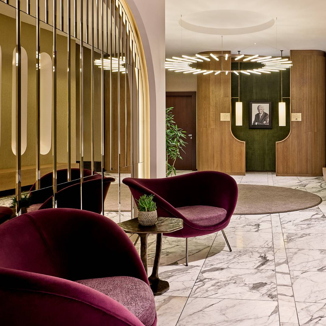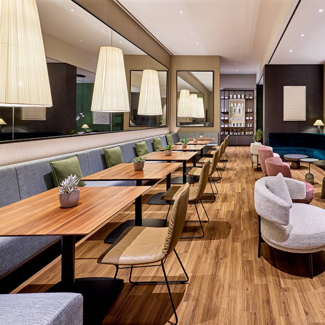L’hotel accoglie numerose sale per riunioni/convegni/eventi che vanno dal salottino intimo alla sala da ballo con il suo soffitto alto quattro metri ricoperto di cristalli! Anche il lounge bar e i due ristoranti hanno il loro perché, e se siete stanchi di lavorare l'hotel ha l’accesso diretto al MyZeil, un avveniristico centro commerciale realizzato dall'architetto Massimiliano Fuksas, uno dei centri commerciali più belli del pianeta...