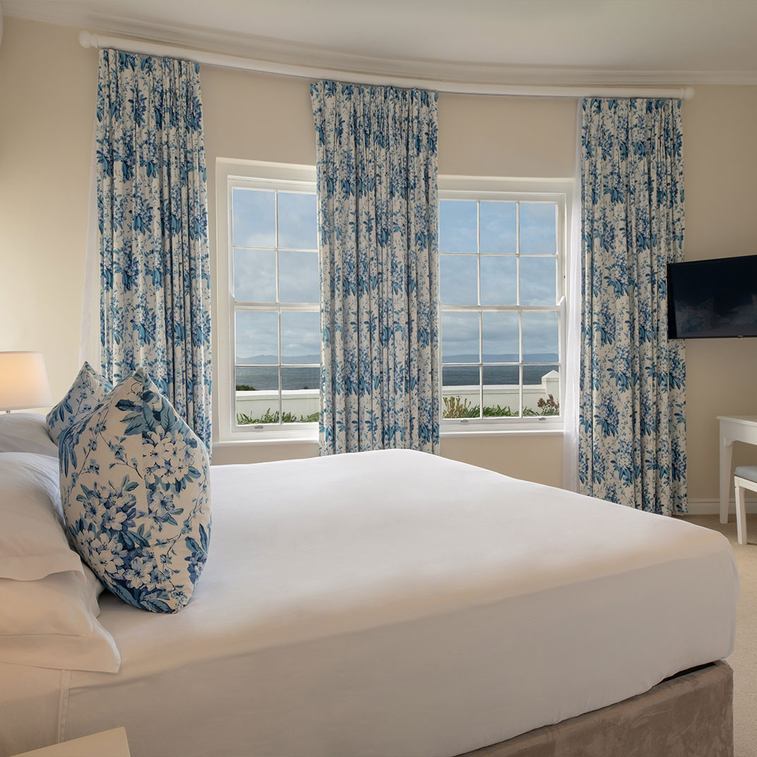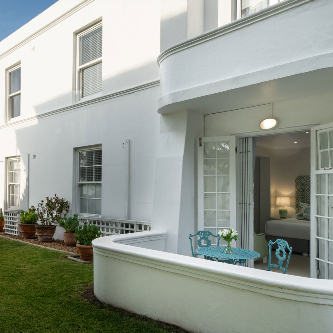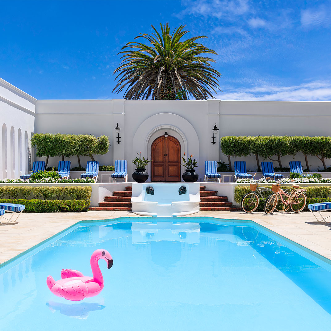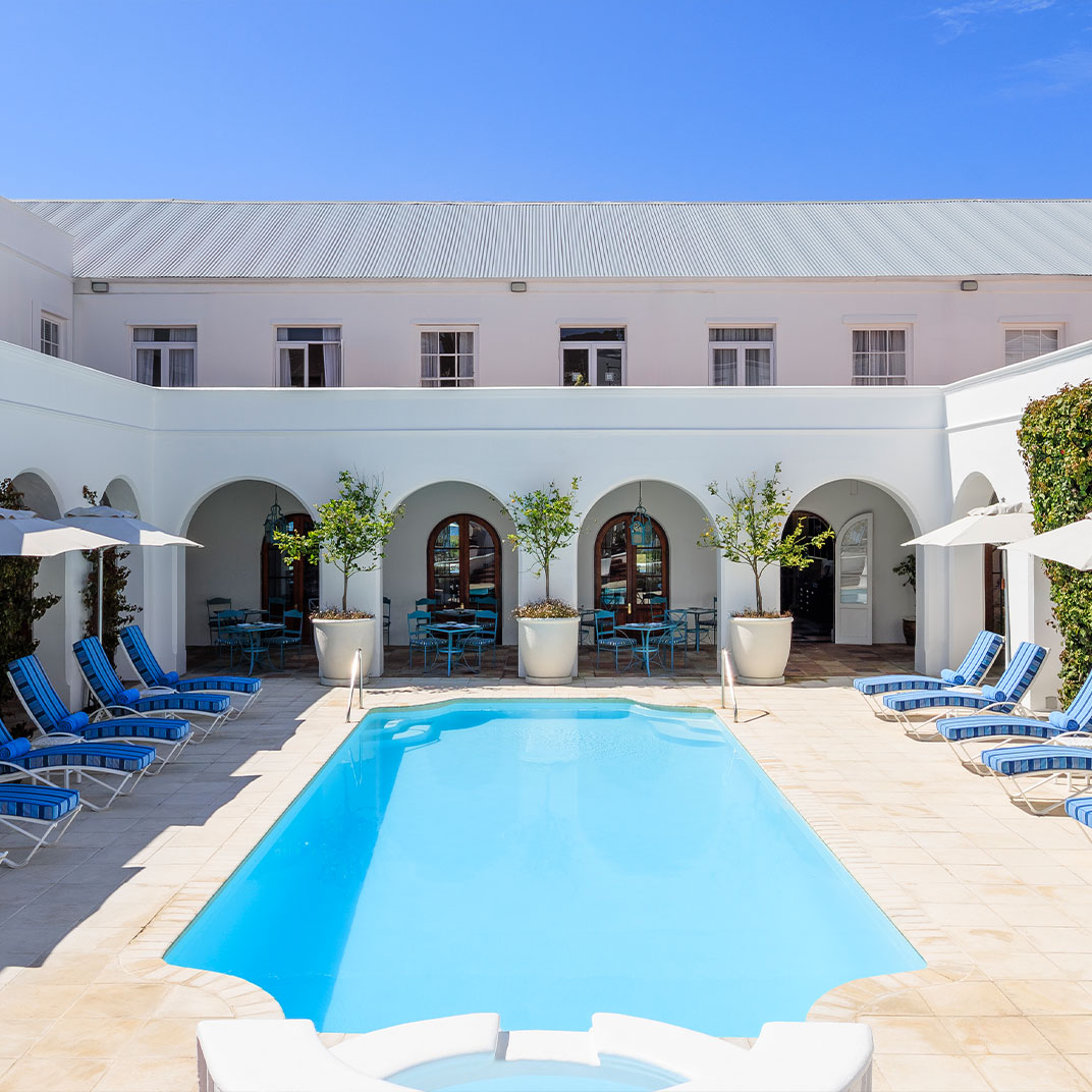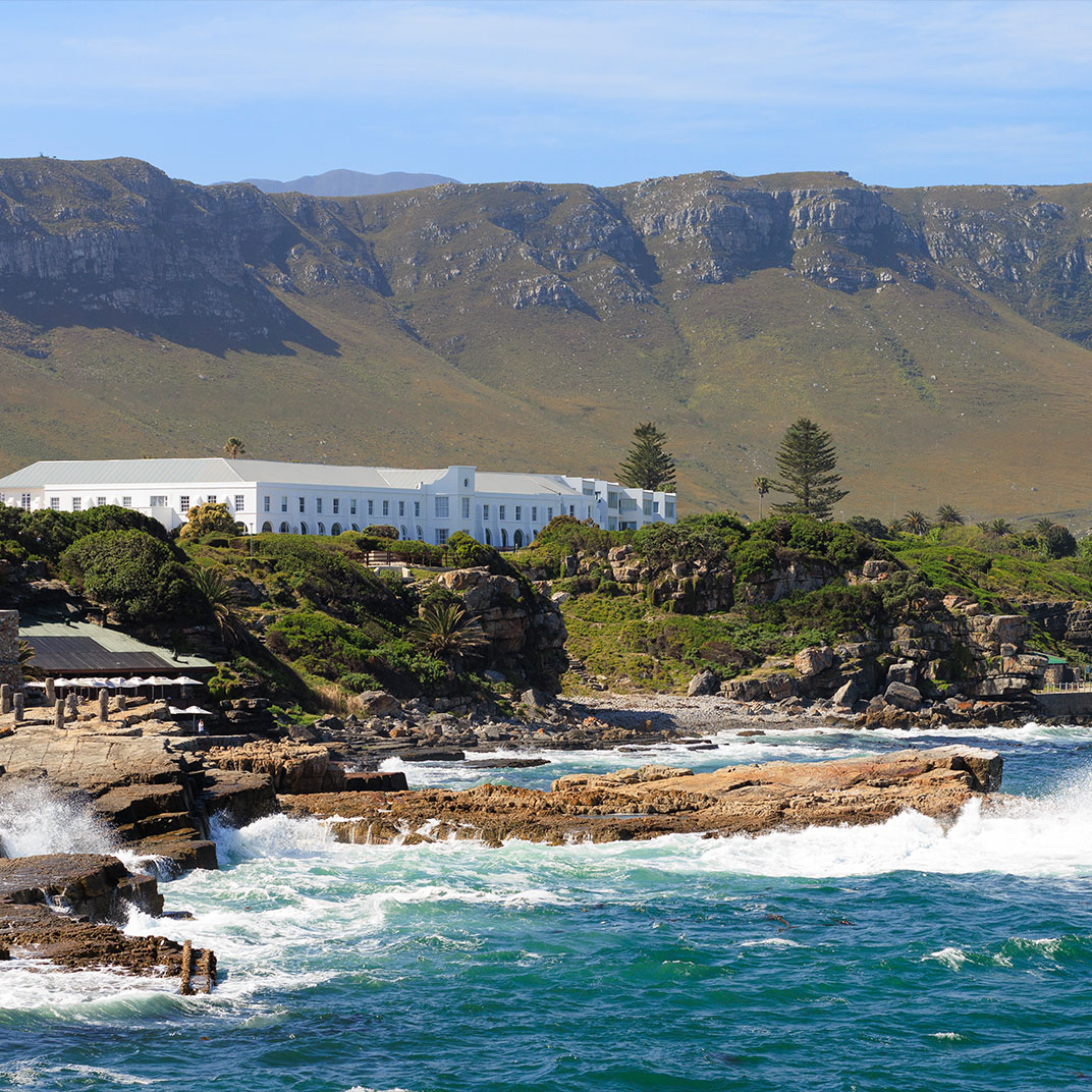 Non pochi resort sul mare offrono escursioni per l'avvistamento delle balene. Ma al Marine Hermanus, gli ospiti non devono uscire dalle loro camere per assistere allo spettacolo: questo tratto della costa meridionale del Sudafrica è un parco giochi naturale per le balene franche australi che emergono vicino alla riva da luglio a novembre. Il resort di 45 camere, costruito all'inizio del secolo e restaurato da Liz McGrath, proprietaria di una serie di hotel di lusso nella Provincia del Capo, è arredato con eleganza e circondato da splendidi giardini. La vera particolarità del Marine, tuttavia, è ed è sempre stata la sua splendida posizione in cima a una scogliera che domina Walker Bay: potreste perdervi metà del suo fascino se non prenotate una suite con vista sul mare. Detto questo, se intendete osservare le balene dalla vostra camera, tanto vale che siate comodi. Camere e suite luminose e ariose traggono spunto dal design dell'ambiente naturale esterno, con rilassanti tocchi di blu e verde, e finestre che incorniciano la vista sull'oceano. Ancora meglio, alcune camere sono dotate di balcone privato.