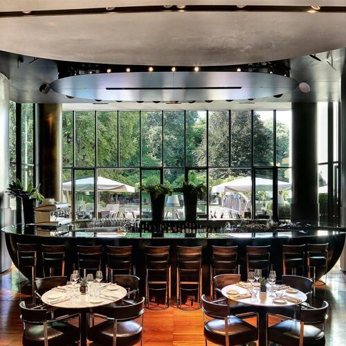 Nel cuore del centro più esclusivo di Milano, all'interno dell’hotel Bulgari, appartato fortino di eleganza ed esclusività, Niko Romito alterna fidati collaboratori alla guida delle cucine, continuando a proporre una linea italiana, contemporanea e alleggerita, presentata in piatti che guardano più alla buona sostanza che alla forma. Formula degustazione e generosa scelta alla carta sia di terra che di acqua. Non mancano i classicissimi della tradizione locale: risotto e cotoletta di vitello alla milanese.