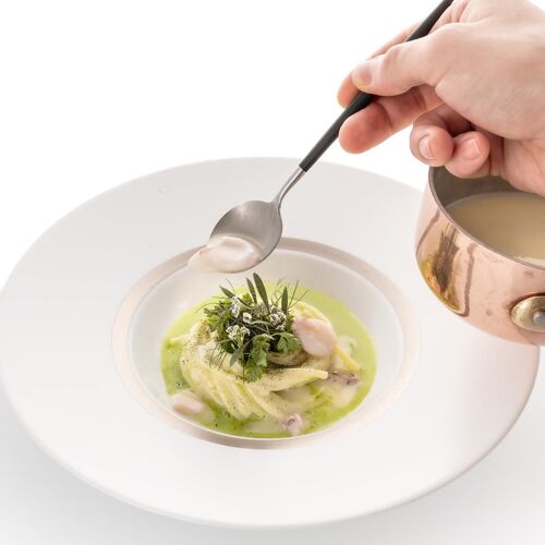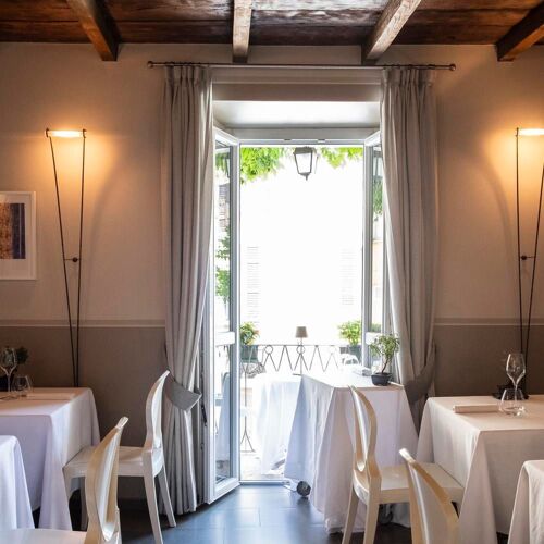 Nel centro storico di uno dei borghi lacustri più tipici d'Italia, una cartolina d'altri tempi, questo piccolo edificio ospita un ristorante dal design moderno, con piccolo privé e tre romantici terrazzini (da prenotare con largo anticipo). La cucina si vuole creativa, precisa, attenta a coniugare pesce di acqua salata con le ottime carni piemontesi. Ogni ricetta è personalizzata ed il contrasto dei sapori e delle consistenze spesso esaltato (imperdibile la crêpe destrutturata al sambuco con polline e pan brioche). Per quanto concerne la proposta enoica una brava sommelier saprà orientarvi nella minuziosa carta dei vini.