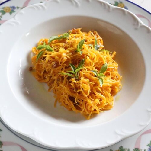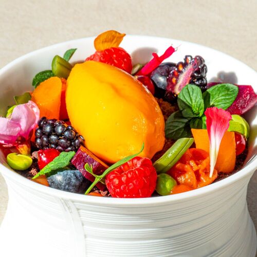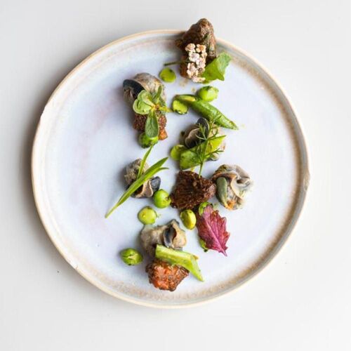 Due orti che lo chef coltiva personalmente con oltre 450 varietà di ortaggi, frutta, verdura ed erbe aromatiche. Una serra con 128 varietà di pomodori. La cucina rispecchia questo amore per la sostenibilità.