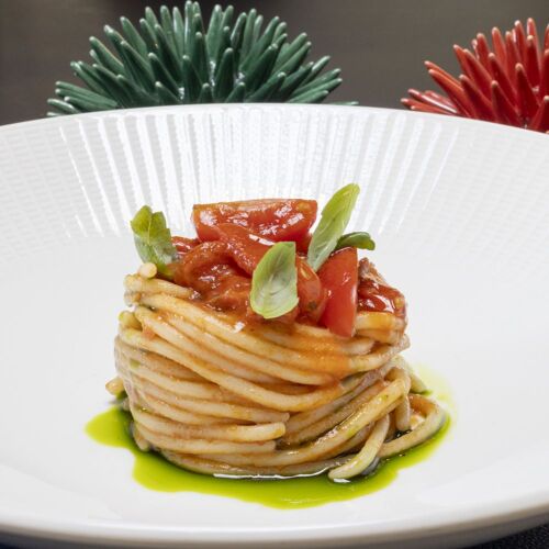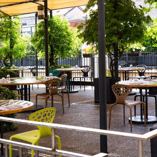 Al piano terra di quello che è diventato una delle icone del paesaggio urbanistico torinese - il grattacielo Intesa San Paolo disegnato da Renzo Piano - trovate l'ingresso dedicato al ristorante. Qui verrete accompagnati all'ascensore con cui, a gran velocità, si sale a 150 metri di altezza: prima di accomodarvi nel ristorante vero e proprio non mancate di concedervi una "deviazione" verso la terrazza panoramica da cui godrete di una splendida visita sul centro città. Quindi, nell'ampia e luminosa sala cinta dalla serra, la scelta gastronomica vi verrà presentata sotto forma di tre percorsi degustazione: uno dedicato al Piemonte, uno alla cucina ed ai sapori d'Italia (molto gustosi i maltagliati; sono solo due ma enormi, cotti nel sugo dei frutti di mare e conditi con borlotti, pesce, jus di calamari e nero di seppia) ed un ultimo dedicato alla casa madre Piccolo Lago. A pranzo, invece, troverete la versione bistrot più semplice.