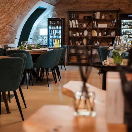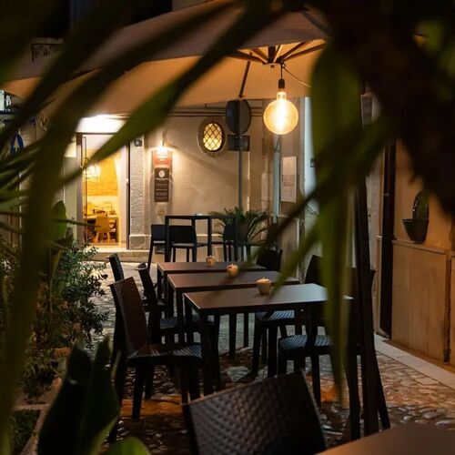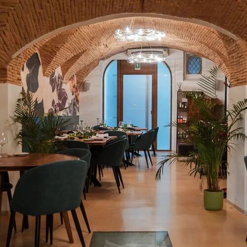 Ristorante situato in un vicolo del centro storico, a pochi metri dalla Cattedrale di Lucera, nel passato questi spazi ospitavano le ex scuderie del palazzo nobiliare. La sala da pranzo è – ora - suddivisa in più sezioni sotto volte in pietra e decorata nei toni del nero e dell’oro. Al centro Di questa, due lastre di vetro lasciano intravedere la cantina, con oltre 400 referenze. Cucina mediterranea, moderna e colorata, dove le verdure accompagnano spesso i frutti di mare (tonno rosso, pesce spada, gamberi, scampi… Imperdibile, la focaccia di mare). Non si tratta tanto di tecnica, quanto di una cucina di prodotti: il piacere del gusto è condiviso da tutti!