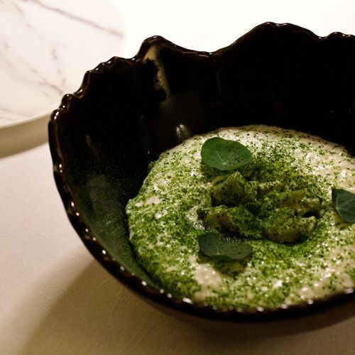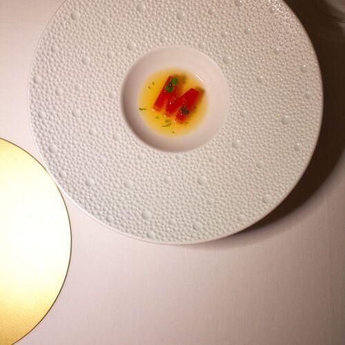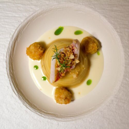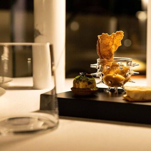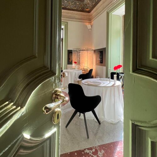 Nel cuore della Palermo monumentale, all’interno di un palazzo cinquecentesco quasi di fronte alla Cattedrale (a fine pasto chiedete di affacciarvi dal balcone: sarà il coronamento di una serata speciale), questo ristorante fuori dal comune condivide gli ambienti con uno spazio espositivo dedicato a Steve Jobs. Ci si accomoda in una delle tre eleganti salette, sotto soffitti affrescati, circondati da fotografie e memorabilia che raccontano il percorso del genio informatico. In cucina, lo chef Carmelo Trentacosti rilegge ricette e ingredienti siciliani in chiave personale: celebre, ad esempio, la caponata trasformata in una cremosa salsa e arricchita da scaglie di cioccolato di Modica, perfetta per una scarpetta con pane lievitato ad hoc. Prima del dolce, non manca un ricco carrello dei formaggi, il tutto accompagnato da un servizio attento e cortese.