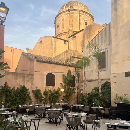 È nell'estremità più meridionale dell'Ortigia, non lontano da Castel Maniace, che troverete la più raffinata espressione non solo della ristorazione siracusana ma anche una delle migliori espressioni di "sicilianità" applicata all'alta ristorazione. Siamo negli spazi di Palazzo Salomone Luxury Suites, dove Giuseppe Torrisi allestisce la sua cucina creativa e tecnica, con piatti dallo spirito barocco e dai sapori intensi, emozionanti e in alcuni casi davvero indimenticabili. Ci ricorderemo a lungo, per esempio, sia della rana pescatrice alla mugnaia con finocchietto e asparagi che dell'assoluto di mandorla (Made in Sicily) disegnato proprio secondo la forma geografica dell'isola. Per i vini non c'è che l'imbarazzo della scelta: possiamo suggerire di esplorare le produzioni locali, tra Etna e costa ovest, o di affidarsi alla competenza e alla discrezione di Antonino, validissimo sommelier, nell'addentrarsi in una proposta di livello anche internazionale.