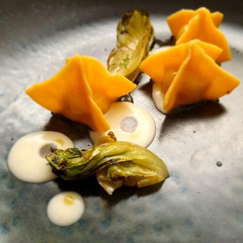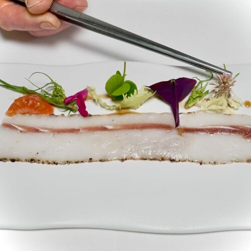 La simpatia di Michela vi accoglierà e vi coccolerà durante tutto il viaggio culinario nella cucina di Raffaele, che esalta i prodotti con ricette dal carattere intenso, arricchite dai sapori freschi dell’orto. Tra i piatti da non perdere, spicca un delizioso tortello alle murici, dal gusto deciso e fresco, oppure le cappesante, appena scottate e servite in stagione con funghi misti e una delicata composta di pesca, nonché il piccione, cucinato in due modi diversi. La carta dei vini offre un’ampia scelta di etichette italiane e internazionali, con la possibilità di esplorare annate passate. Il locale, dai toni contemporanei, dispone di un bellissimo camino moderno per le fredde serate invernali. Un consiglio per un’esperienza originale: prenotate il tavolo in cantina, disponibile solo nella stagione calda!