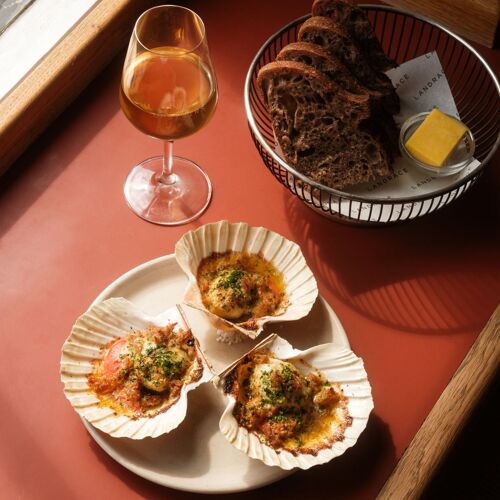 Landrace itself is an artisan bakery, which specialises in sourdough bread from stoneground British grains; if you can tear yourself away from the delicious aroma of the baking, head upstairs and you'll find this simply decorated restaurant with a pleasantly bright feel. The daily menu lists seasonal British dishes which are carefully cooked and full of rustic flavours, utilising produce from Brixham turbot to Scottish porcini. The bread and butter to start is, of course, a highlight and you may even consider ordering a second portion.