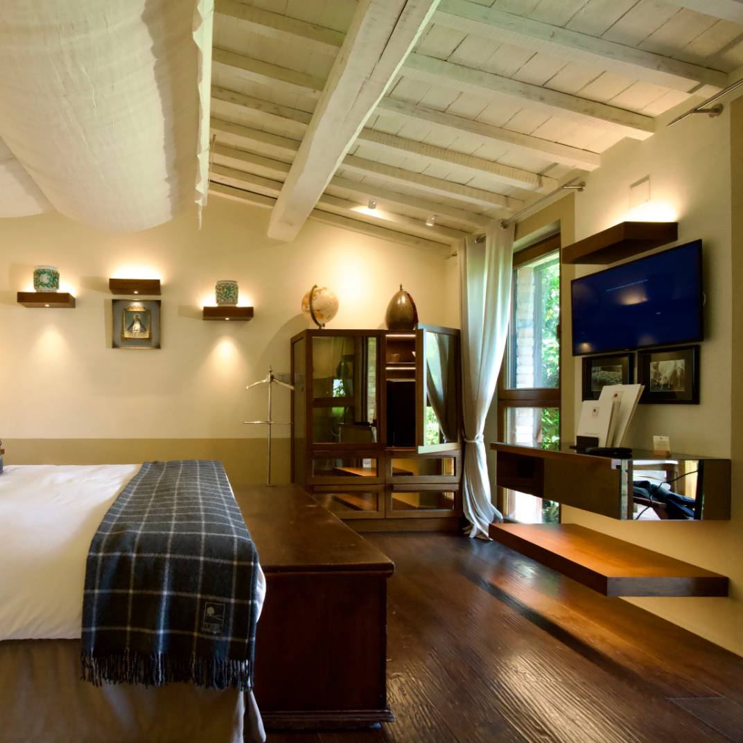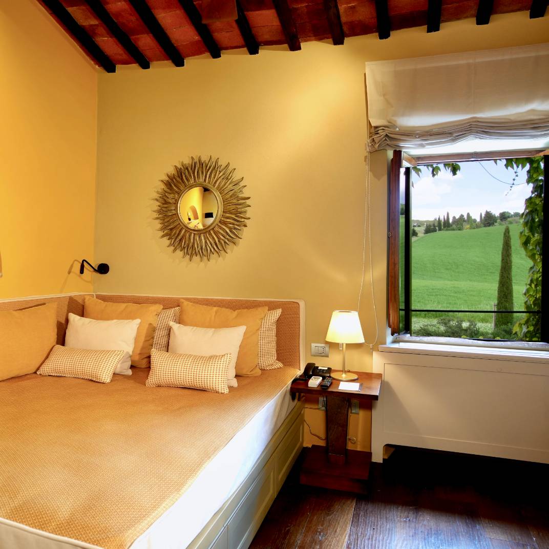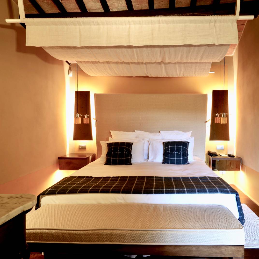 In the heart of the spectacular Val d’Orcia, between Monticchiello and Pienza, this farmhouse hotel is a remarkably understated one, the better to let the surroundings shine. L’Olmo’s modest size — a mere one room and five suites — helps ensure the atmosphere is always relaxed, and the pleasures here are low-key indeed, from sampling the estate’s own olive oil to unguided walks in the picturesque Tuscan hills or simply lounging in the gardens or by the pool. A small but lovely dining room serves three exquisitely local meals per day; the wine cellar’s collection spans all of Italy, with a local bias.