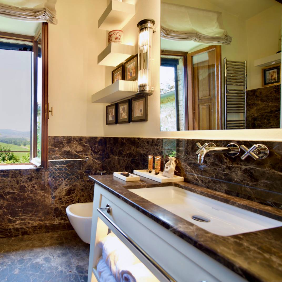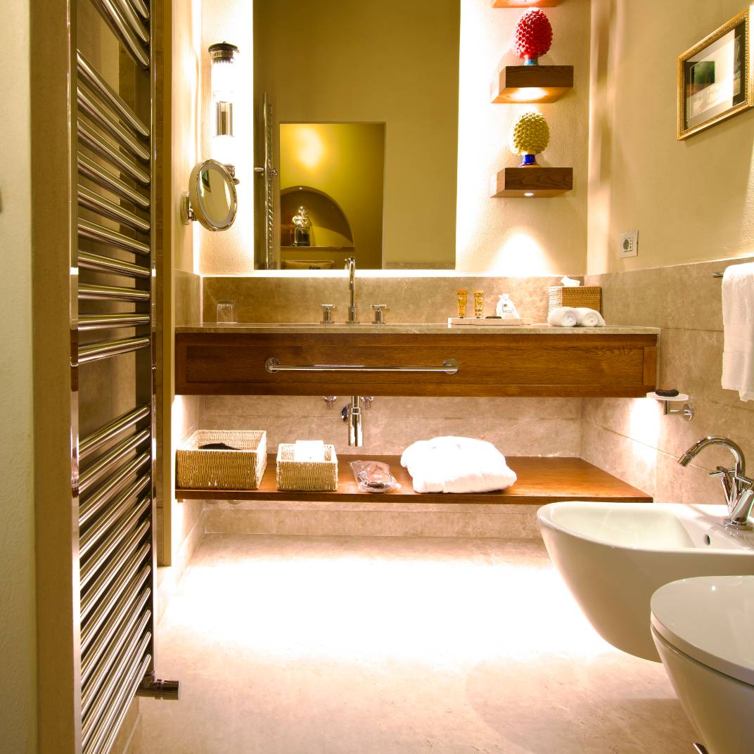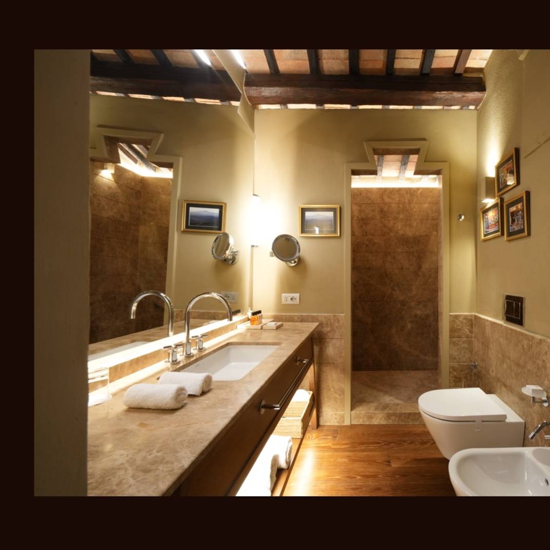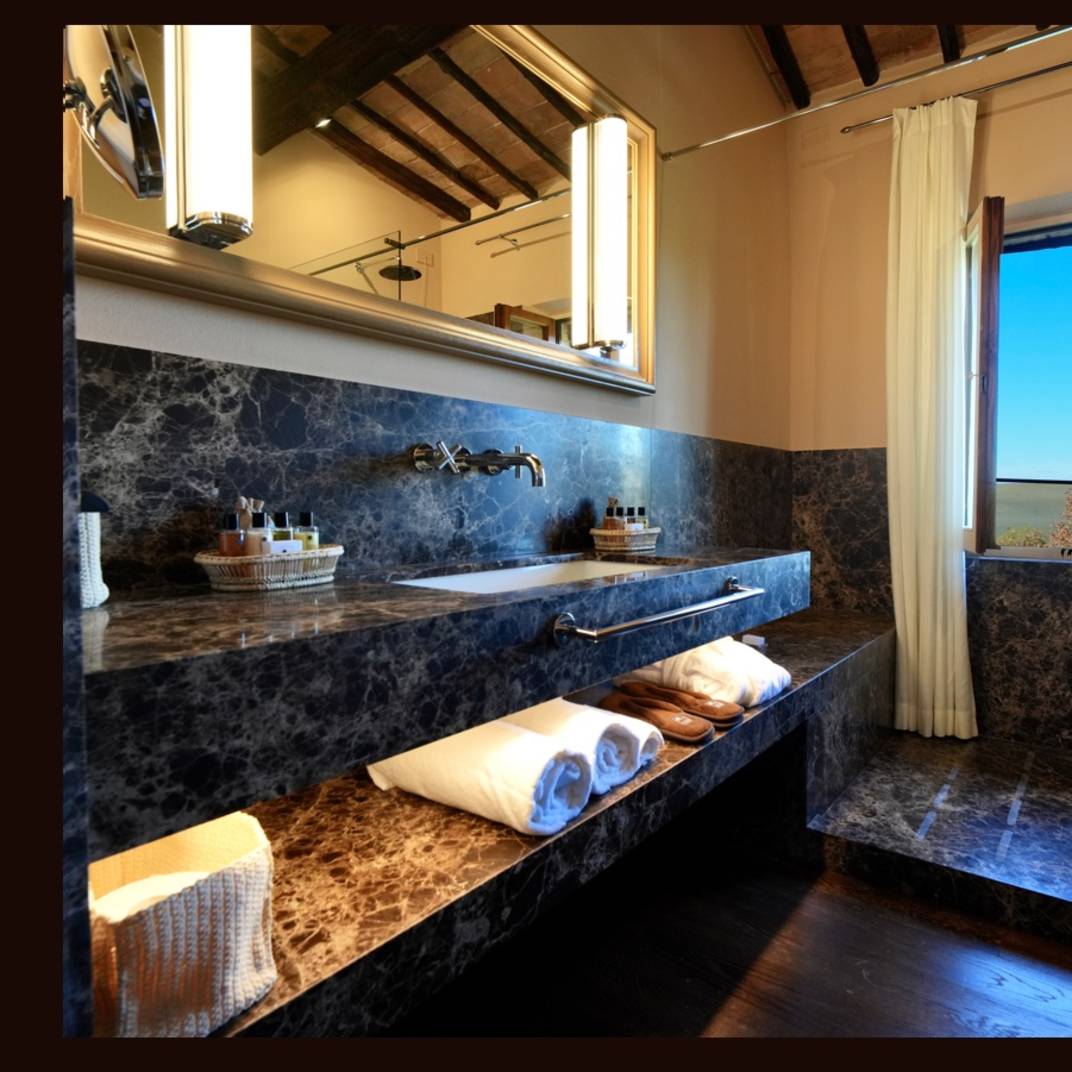 In the heart of the spectacular Val d’Orcia, between Monticchiello and Pienza, this farmhouse hotel is a remarkably understated one, the better to let the surroundings shine. L’Olmo’s modest size — a mere one room and five suites — helps ensure the atmosphere is always relaxed, and the pleasures here are low-key indeed, from sampling the estate’s own olive oil to unguided walks in the picturesque Tuscan hills or simply lounging in the gardens or by the pool. A small but lovely dining room serves three exquisitely local meals per day; the wine cellar’s collection spans all of Italy, with a local bias.