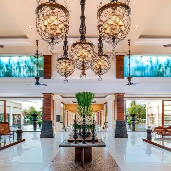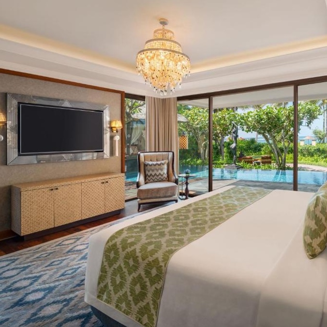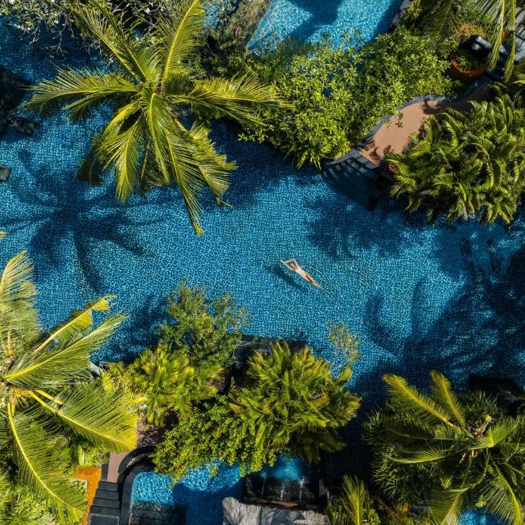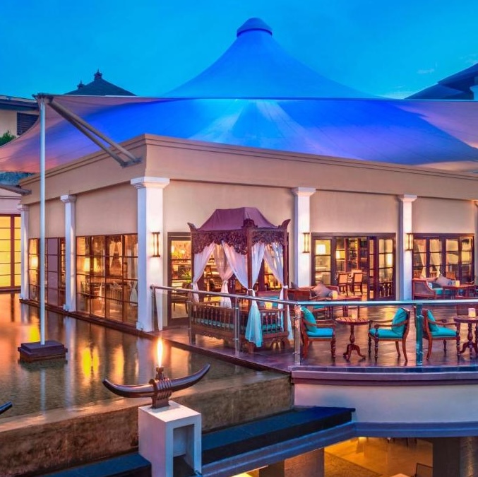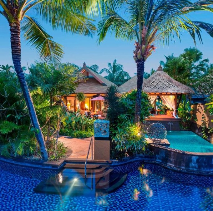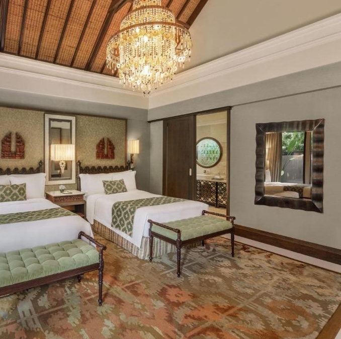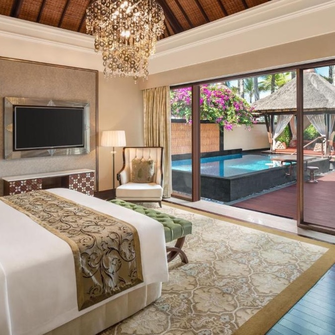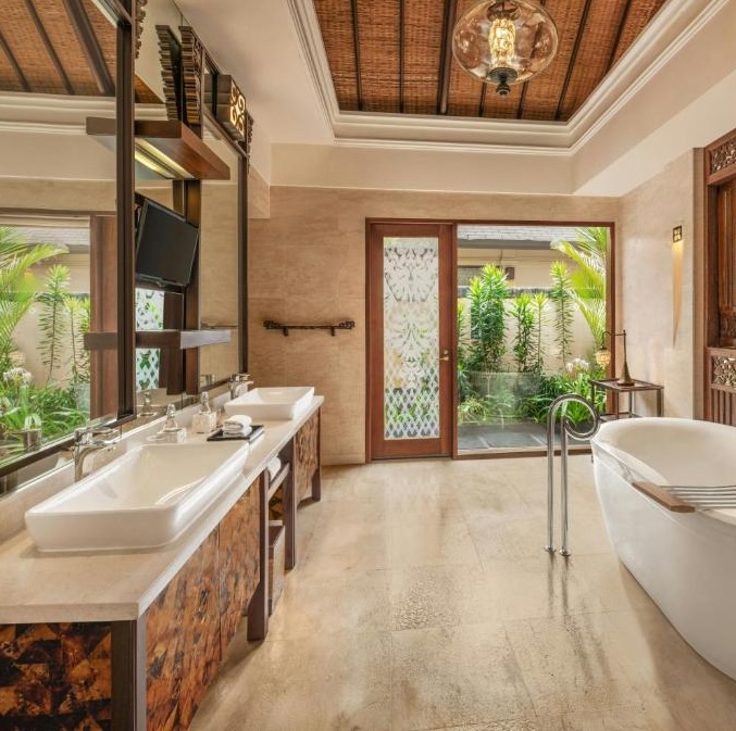 Nusa Dua has no shortage of pristine beaches to choose from, but The St. Regis Bali has taken a particularly idyllic stretch of sand right on Nusa Dua beach, overlooking the calm waters that make it an ideal spot for swimming and sunbathing. The collection of suites—there are no mere guest rooms here—are some of the largest on the island and come with guaranteed garden, pool or ocean views and the signature St. Regis 24-hour butler service. Check in to the top of the range one-, two- and four-bedroom villas for extras such as private pools and direct access to the saltwater lagoon or beach. There is also a kid’s pool and a heated pool at the spa, which offers treatments based around traditional Balinese therapies. Dining options include traditional Balinese cuisine at Dulang, pan-Asian dining at the oceanfront Kayuputi, and cocktails and jazz at The St. Regis Bar.