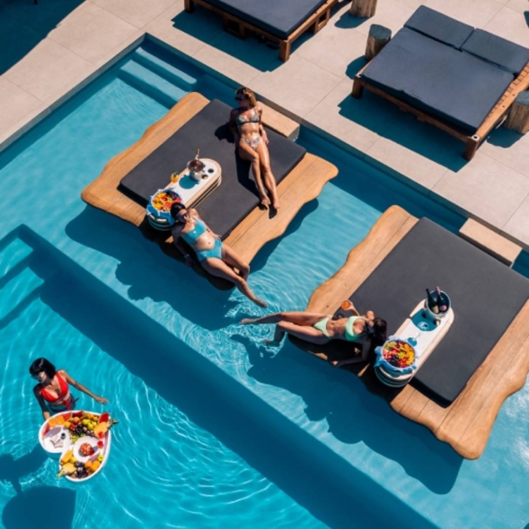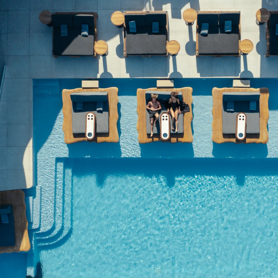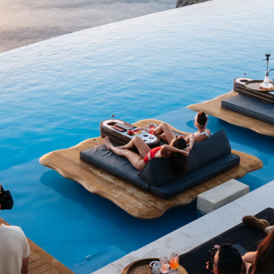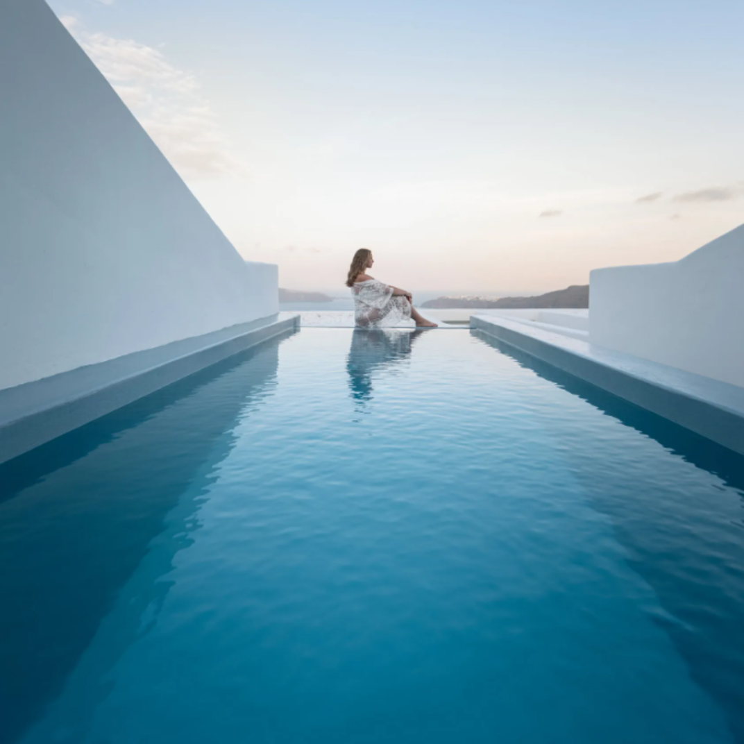 Cavo Tagoo, like most of the best hotels on Santorini, isn’t just a casual B&B at the beach. It’s a stunner of a resort, complete with dramatic whitewashed architecture, five-star amenities, a seductive open-air bar and restaurant that’s a destination in itself. The owners know what they’re doing. The flagship location of the Cavo Tagoo, just a hop, skip, and a jump away on the island chain, is considered one of the best hotels on Mykonos. They have a formula that works — Cycladic minimalism, to borrow their phrase, a killer cliffside location, an air of exclusivity, a preternaturally hip and youthful staff — and they’ve repeated it here.
