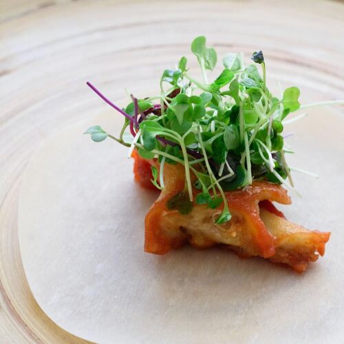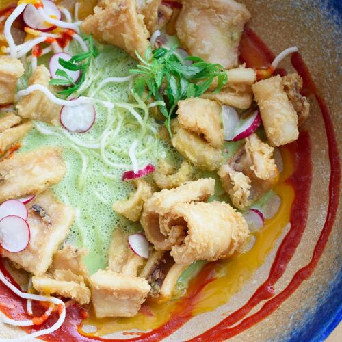 If you’re looking for something different you’ll find it here, as the focus of the couple in charge (María and Miguel Ángel) is on fusion cooking that combines the flavours of India, Morocco, France, Japan etc. It now boasts a more spacious layout following its move to a new central location in Plaza de San Juan as well as an unmistakeable appearance thanks to a striking yellow door that provides access to this relaxed bistro. The à la carte, with its strong focus on sharing, is surprising for its so-called “Bocados del Mundo” (Mouthfuls of the World, we particularly enjoyed the brioche with a veal ragout, spiced butter and white truffle), which are complemented by a section entitled “Algo más Serio” (Something More Serious) and desserts under the heading “Un buen recuerdo” (A Happy Memory). A tasting menu (Amelia) is also an option here.
