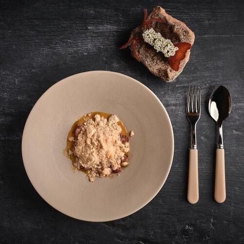 Oba- is much more than just a restaurant, given that chefs Javier Sanz and Juan Sahuquillo go far beyond the normal vision of a fine-dining experience through a philosophy that connects them fully with their surroundings. On their menus (Cuaderno Medio, Cuaderno Largo and Cuaderno Extra Largo), they invite guests on an incredible journey inspired by the roots of La Mancha’s cuisine, making full use of the premium meat and vegetables from the Cabriel valley and the La Manchuela area in truly unexpected ways. They do so by combining traditional and innovative techniques (they are especially keen on fermentation) and showcasing the region’s small-scale producers. Local breeds (Manchega Machorra sheep, Celtibérico goat), game, poultry, fish, crayfish and vegetables grown in the river valley all feature heavily on the menu here, with plenty of attention paid to service, including finishing touches to some dishes at the table to encourage interaction with guests. Two pairings are also available, one with wine, the other featuring a choice of naturally produced drinks.