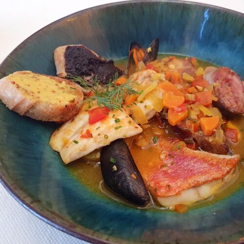 The surroundings are quickly forgotten (a business estate), as you concentrate on the fine and fresh food, truly bursting with flavours. One case in point is the speciality of the Breton chef: Tours - style bouillabaisse – packed with red mullet, scorpion fish, pork rillons and andouillette.