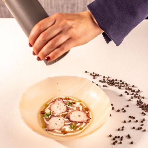 If you happen to find yourself in Pedreguer’s old town, this restaurant close to the market will definitely attract your attention thanks to its façade and its meticulous and contemporary interior design. On their two menus (Valentina and Ausiàs March, both with the option of adding an additional tripe dish), the young couple at the helm, Ausiàs Signes and Felicia Guerra, showcase Mediterranean cuisine that they have impressively brought up to date and which is always built around local and regional ingredients. The desserts here stand out – and for good reason: in 2022 (when he was head pastry chef at the renowned Tatau restaurant in Huesca) Ausiàs won the Pastelero Revelación en Madrid Fusión award.