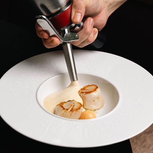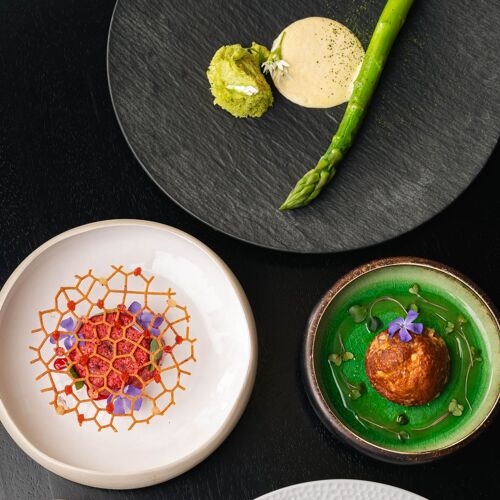 It may have an exterior that is typical of northern France, with its white bricks and eaves, small window panes and black surrounds, but this restaurant actually has a smart contemporary interior. Chef Christophe Hagnerelle is a true craftsman, who creates unfussy seasonal cuisine. The menu features excellent fish and shellfish from the North Sea, including turbot, sea bass or John Dory, depending on the catch of the day, but also scallops, as well as grouse and hare à la royale in season, veal sweetbreads and pigeon – from Flanders, of course.