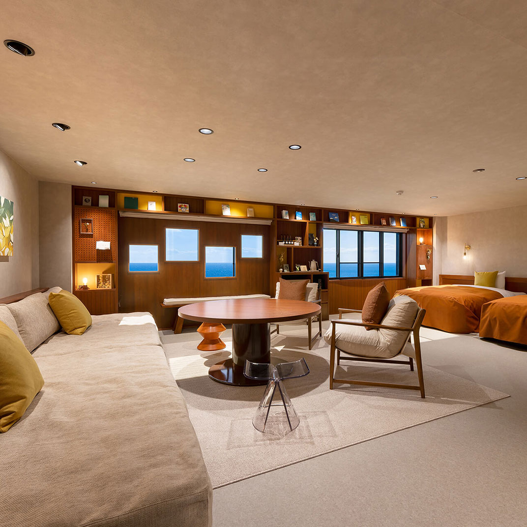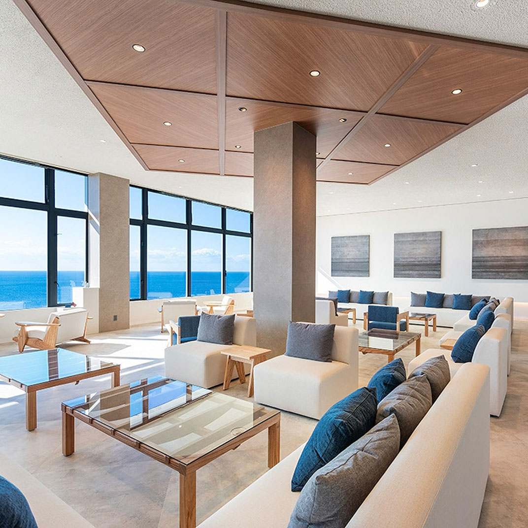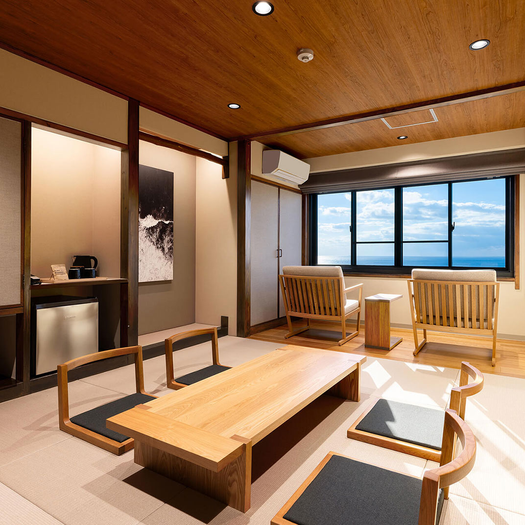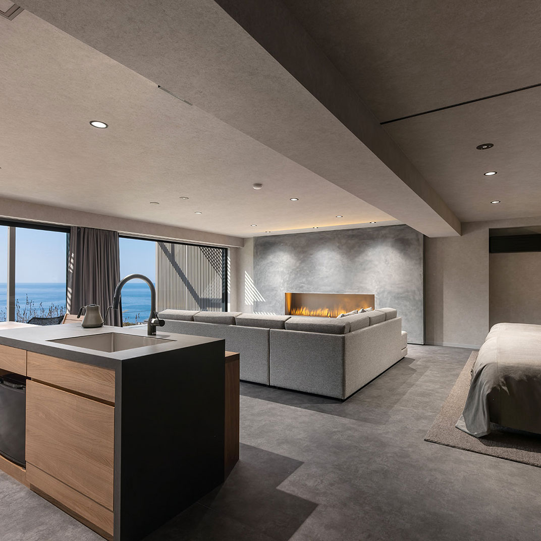 Cape Ashizuri, the southernmost point of Shikoku Island, is widely admired for its picturesque landscapes and seascapes. And it’s here, within Ashizuri-Uwakai National Park, a short distance from the cape’s lighthouse, that you’ll find TheMana Village, a small but spectacular lodging that derives much of its drama from its singular natural environment. Four minimalist-luxe rooms and suites make up the accommodations, and just like the public spaces, all of them are oriented to take in hypnotic views of the sea. And it’s the Pacific itself that inspires Azzurrissimo, the hotel’s high-end Italian restaurant.