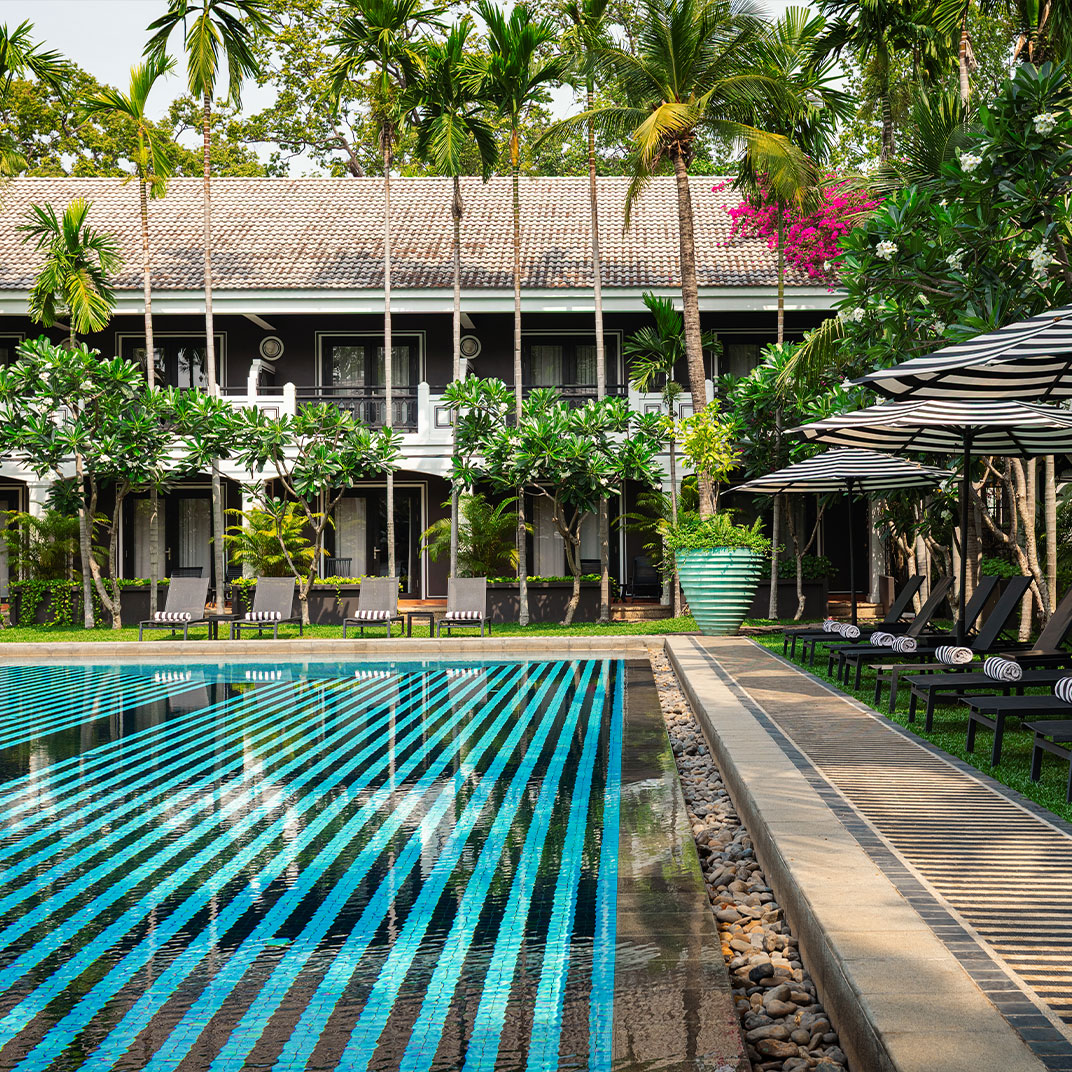 Bensley was first known for his landscape work, so it’s no surprise that Shinta Mani Angkor, despite its urban setting, is as verdant as can be. The accommodations come in three distinct flavors, with the Bensley Pool Villas at the top of the range. And along with a generous helping of style, Shinta Mani Angkor features substantial attractions, from the Khmer Tonics Spa to Kroya, a modern-classic Khmer restaurant.