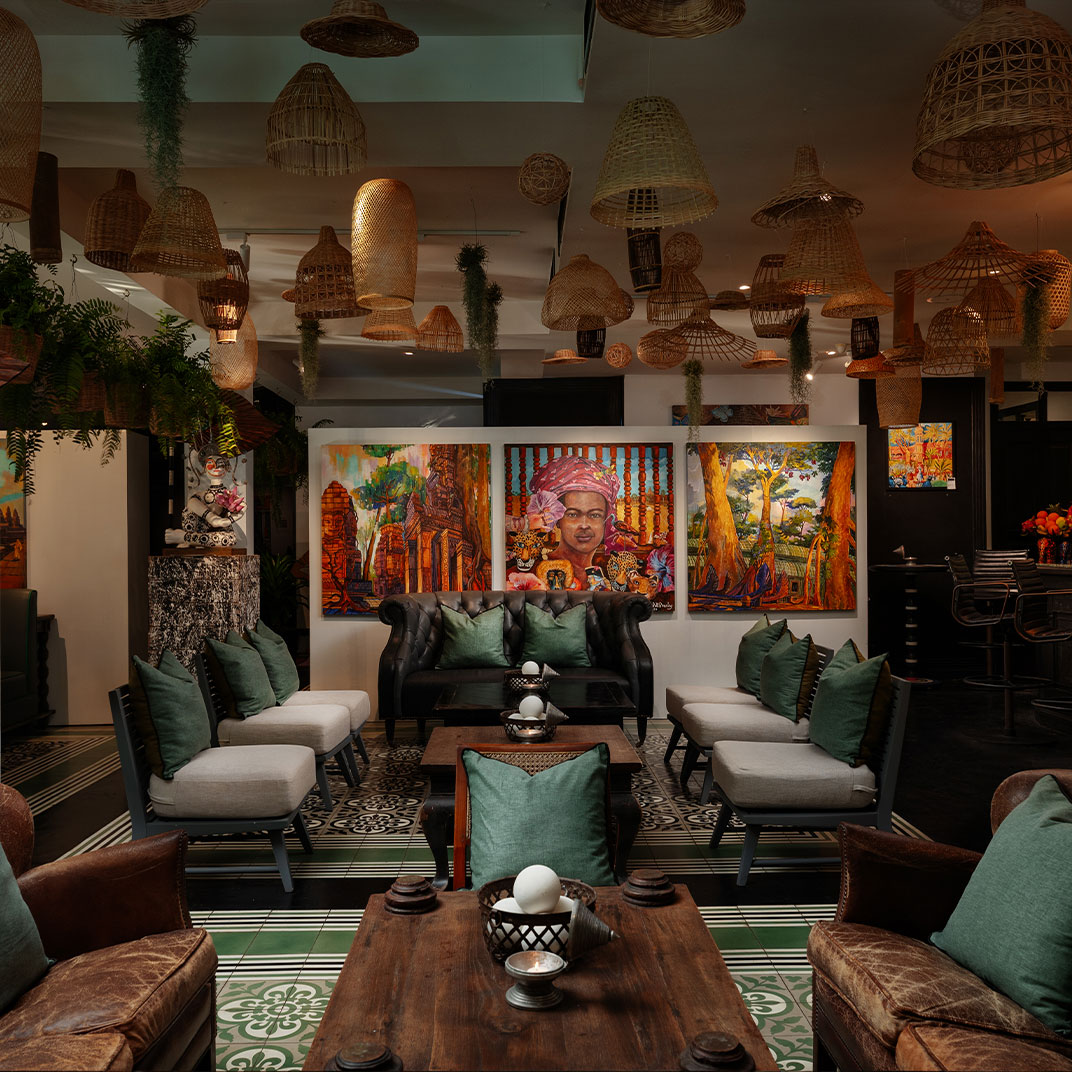 The historical and spiritual gravity of the temples at Angkor don’t stop Shinta Mani from indulging its playful side — this Siem Reap luxury resort was designed by the California-born, Bangkok-based architect Bill Bensley, who is responsible for more than his fair share of Southeast Asia’s finest hotels and resorts. Here he’s at his most eclectic, leaving his stamp — and his artworks — all over the resort.