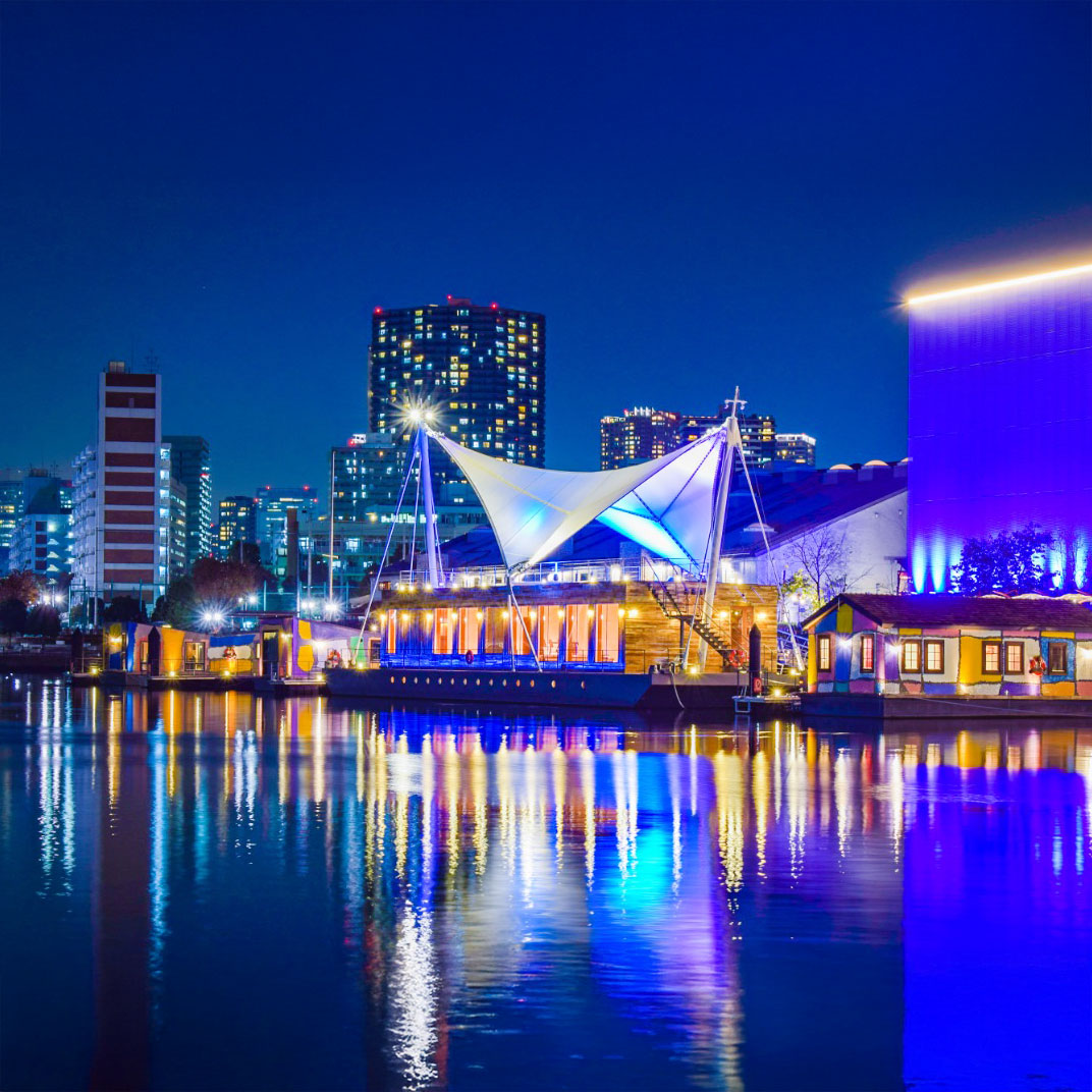 Warehouse Terrada began as an art storage concern, and is now not just a major exhibitor but has turned the canal-side district of Tennozu into a thriving Tokyo arts district. Nor are they content to stop there — Petals Tokyo is the group’s first foray into hospitality, and it is, to say the very least, no ordinary hotel. Here four houseboats in dramatically divergent styles comprise what might be Tokyo’s most unique lodging. Inside, they’re still distinctive, though more luxurious and more sedate than their exteriors might lead you to believe. Naturally there’s not much space for an on-site restaurant, but Tennozu’s offerings are plentiful.