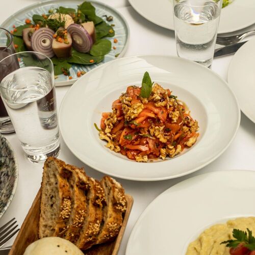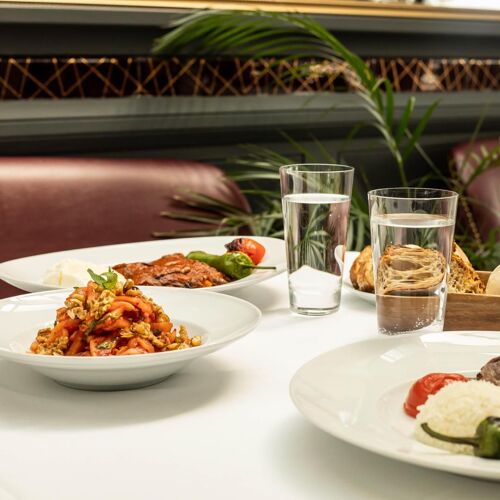 The Adile Sultan Palace is an events venue that is as spectacular as its name suggests. A stroll through the building will give you a sense of its grandeur and splendour – characteristics that Borsa is fortunate to share. To dine against a breathtaking backdrop of the Bosporus, head to the terrace. This upmarket restaurant showcases traditional Turkish cuisine on an à la carte basis. In his dish featuring medium-rare lamb ribs, spinach and roast potatoes, the chef allows the distinctive flavours of the ingredients to shine through. Less is more at Borsa. Make sure you leave room for dessert – the classic katmer (crispy filo pastry filled with pistachio) is very tempting!