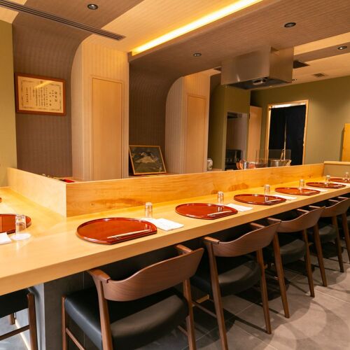日本料理と天ぷらが味わえるおまかせ。八寸、椀物、炊き合わせに、岡崎の料亭で鍛えた腕前を見せる。綿実油で揚げる天ぷらは、軽やかな仕上がり。炊き込みご飯に使うのは、女将の実家から届いた棚田米。米どころの写真を板場に飾り、家族の愛情も店を支える。昼は重箱で供される弁当と天ぷらの用意も。