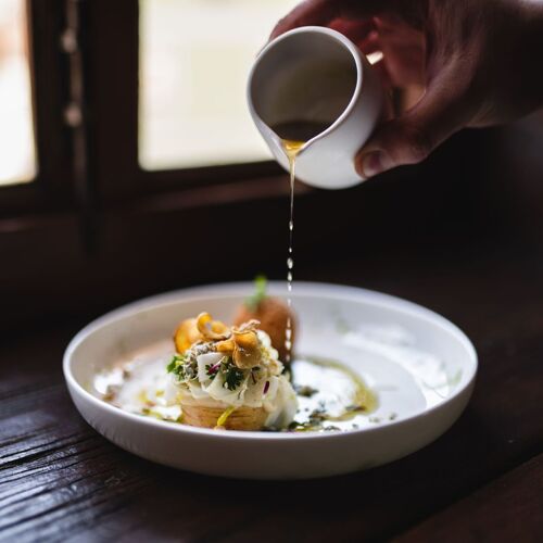Set in the Salzburg mountains, in the UNESCO Biosphere Park, Mesnerhaus has been run by Maria and Josef Steffner since 2007. The modern interior design within the venerable walls of this building dating back to 1420se, incorporates the historical architecture beautifully. An extremely warm and welcoming hostess, Maria is responsible for the wine cellar, restaurant and hotel, which has six cosy rooms and a suite. With just as much dedication, Josef delivers expressive, creative cuisine made from regional and seasonal produce, served as a set menu or à la carte. The signature dish Lungau potato with sour cream, egg yolk and Grüll caviar is fabulous.